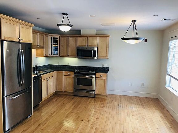This sun filled Needham Heights second floor apartment offers well maintained newer construction features with hardwood floors throughout, stainless steel appliances, granite, tiled bathrooms, and recessed lighting. One level, open floor plan offers generous living area. Ideally located across the street from the MBTA commuter rail, within minutes to Rt. 95, Rt 9, and the Mass Turnpike, and next door to Trader Joes, CVS, Starbucks, and others; this is the perfect home for commuters and the like. This unit also generously offers free laundry, 2 off street assigned parking spots, and a large storage unit.