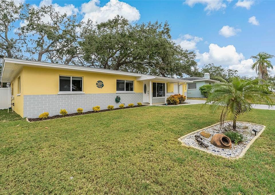 PENDING -- TAKING BACKUPS!!  Located in the very desirable Lakewood Estates neighborhood in the heart of Dunedin, you are only a short golf cart ride to downtown Dunedin with it's unique blend of micro-breweries, distilleries, restaurants, locally owned shops, and incredible restaurants. This  recently updated home features granite counter tops, Whirlpool stainless appliances, a pool was resurfaced in 2021, with LED lighting added in 2023 along with a pool heather and updated pool filter and electrical for the pool equipment.  The roof was replaced, including the flat roof in March 2023,  screening around the pool area was done in 2021 as well.  Vinyl fencing provides privacy in the yard, and the landscaping was recently refreshed with new sod in a number areas, as well as new plantings up front.  irrigation system was completely reworked in 2020. The garage features the second bathroom and the laundry and has a recently  installed epoxy floor covering.  Come see this home today and make it yours.  Take your golf cart to downtown or some of the neighborhood attractions.  Start enjoying all that the area has to offer.  The open floor plan and oversized windows make this home bright and welcoming from the moment you walk in the door.  Don't let this one get away. Homes in this neighborhood don't last long!