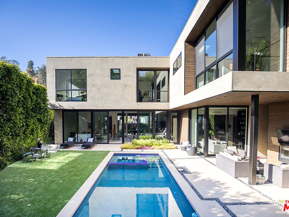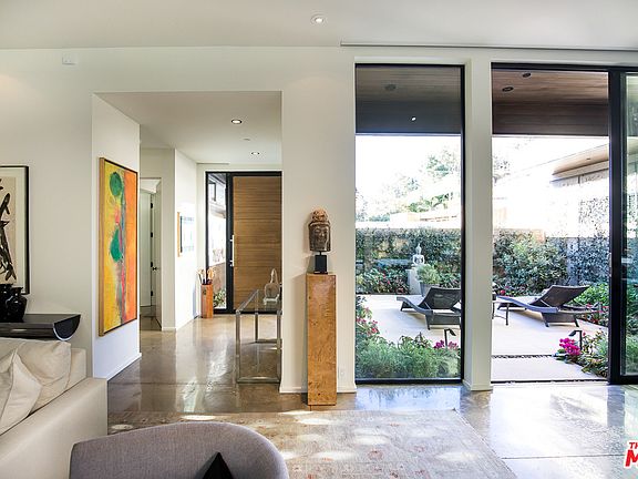 Masterfully designed by renowned architecture firm Marmol Radziner, this iconic California Modern is sited on an idyllic Brentwood cul-de-sac and blends effortlessly into the hillside by way of native materials and impeccable architectural design. Framed by single-pane, 11-foot sliding glass doors, the central great room opens seamlessly to the lush front courtyard and backyard oasis where a lap pool, spa, outdoor kitchen and covered dining space are perfectly nestled into the home's natural landscape. The main floor includes a sleek cutting-edge chef's kitchen, formal dining room, catering kitchen, wine room, virtually silent, state-of-the-art contemporary vacuum elevator, and guest suite with a private side entrance. On the second level, find four spacious bedrooms, including the luxe primary suite with a stunning spa bath, ample closet space and floor-to-ceiling windows that unveil spectacular treetop views. Replete with thoughtful, custom details and every modern luxury that today's most discerning home buyers seek, this Marmol Radziner-designed retreat defines the best in luxury California living.