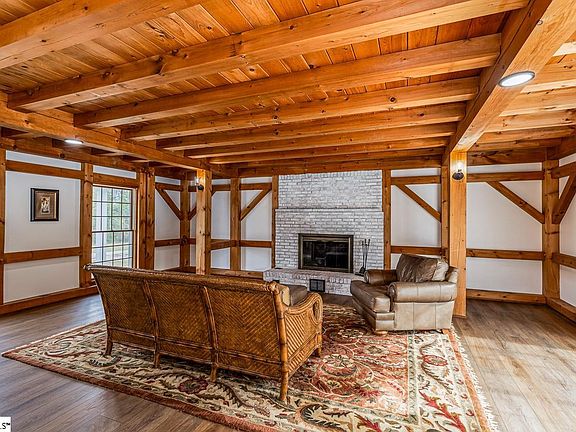 Welcome to your private retreat just minutes from town! This stunning post & beam Cape Cod on 6.89 acres blends rustic charm with modern comfort. Enjoy vaulted ceilings, exposed beams, and natural light throughout. Post and beam construction like this is almost cost-prohibitive with today's prices. The renovated kitchen features quartz counters, new appliances, and updated cabinetry. Cozy up by the fireplace or relax in the sunny office overlooking the field. Step outside to your saltwater pool, expansive deck, and pergola—perfect for entertaining or quiet weekends. The primary suite includes a spa-style bath with soaking tub, walk-in closet, and screened porch. Also upstairs are 2BRs, 2BAs, and a versatile flex room (could be configured to be part of primary closet. Extras include a Generac generator, new drainage system, encapsulated crawl space, and water filtration. Attached 3-car garage with epoxy floors. Horse property potential! Convenient to shopping, dining, and the highway—country living with city access!