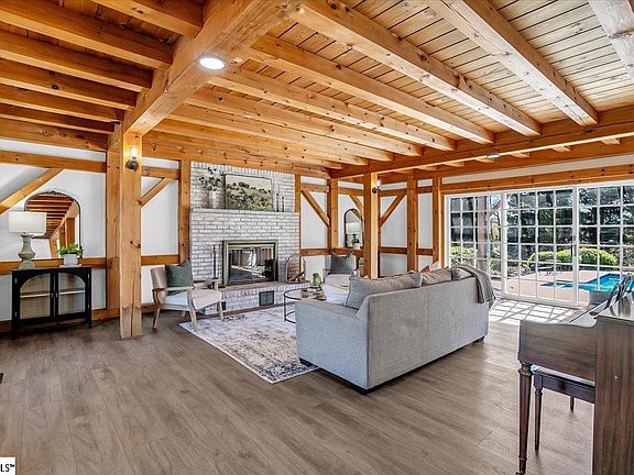 *All Open Houses have been cancelled* - Welcome to your private oasis just moments from town at this stunning post and beam home nestled on almost 6.89 +/- acres of serene countryside. This beautifully renovated property offers a harmonious blend of rustic elegance, modern luxury, and convenience creating an exceptional living experience. As you enter, you'll be captivated by the impressive post and beam architecture that adds character and charm to every corner. The Cape Code layout boasts 3 bedrooms and 4.5 bathrooms as well as an office and flex space, providing ample space for comfortable living and entertaining. The spacious living area is adorned with exposed beams and a cozy fireplace, providing a cozy ambiance for relaxation and entertainment. The renovated kitchen features new appliances, quartz countertops, with refinished and updated cabinetry along with the beautiful dining area which creates the perfect central hub for hosting gatherings or intimate dinners. Between the kitchen and the living room there’s additional cabinets and counter space providing extra storage, as well as a half bath. Step outside to enjoy leisurely swims in your saltwater pool or bask in the sun on the expansive deck or, enjoy the partial shade underneath the beautiful pergola in your very own private paradise. Returning inside, just off the kitchen, you’ll find the perfect office space providing plentiful amounts of natural light and beautiful view of the meadow. Continuing down the hallway you’ll find a full bathroom, laundry room, doorway to the brand new, and attached 3 car garage with epoxy coated floors. In the garage you’ll find - the new water filtration system as well as a full, renovated bathroom with an outside door conveniently located to the pool area. Heading upstairs, discover a thoughtfully designed layout featuring three bedrooms, a versatile flex room, and two full bathrooms. The vaulted post and beam ceiling adds an airy and spacious feel throughout, enhancing the overall ambiance of this exceptional home - along with natural light streaming through skylights. The spacious primary bedroom has its own private covered and screened porch, a perfect place for rest. And, the beautifully updated primary bathroom features a soaking tub overlooking the pool area, separate shower, and two separate vanities, creating a spa-like experience at home. Two additional bedrooms and full bathroom provide comfortable accommodations for family members or guests. The flex room offers versatility to suit your lifestyle, whether used as a home office, media room, or playroom. Its flexible layout allows for customization to meet your specific needs. Experience the allure of vaulted post and beam ceilings that gracefully span the upper level, creating a sense of grandeur and architectural charm throughout. This upstairs retreat embodies a perfect blend of comfort, functionality, and style, making it a standout feature of this remarkable home. Located in a desirable area with easy access to shopping, restaurants, parks, and about 10 minutes to the highway. This home offers the perfect blend of tranquility and convenience. Note an additional 43.1 acres of is land available. Additional features: Generac Load Manager generator, recently installed drainage tile/piping for the backwashing of the pool, and the crawl space is full encapsulated.