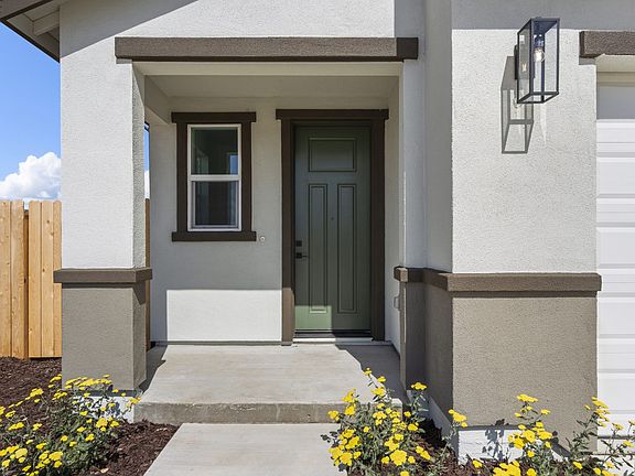 Accented with a pantry and cabinet spaces, the kitchen accommodates plenty of storage. A sliding glass door leads to the backyard, seamlessly blending indoor and outdoor living spaces and allowing for easy access to al fresco dining and relaxation.