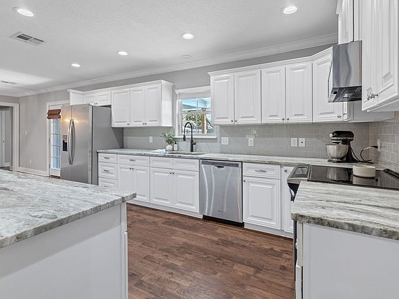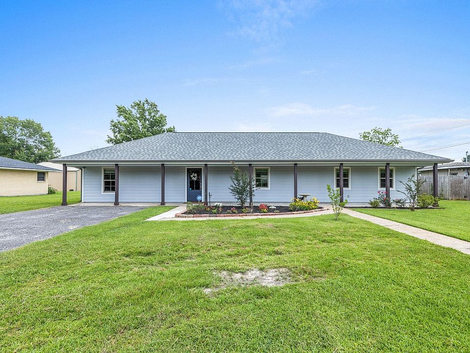 Welcome to your dream home! This spectacular, immaculately maintained 4-bedroom, 2 bath home boasts an inviting open floorplan that seamlessly blends style and functionality. Brand New Flooring in all living areas and bedrooms! The heart of this home is the enormous kitchen, featuring sleek stainless appliances and a spacious island perfect for meal prep and entertaining. Includes extra bar seating for casual gatherings. You'll enjoy the cozy living room with electric fireplace that provides a delightful focal point and a warm ambiance for those cool evenings. Retreat to the luxurious master suite, where you'll find a gorgeous private bathroom with a double vanity and walk-in shower that adds a touch of elegance. The additional three bedrooms are perfect for family, guests or a home office. Step outside to the covered patio, where you can enjoy your morning coffee or evening gatherings while overlooking a privacy-fenced back yard, ideal for outdoor activities or simply unwinding after a busy day. Plus, a handy storage shed provides extra space for your tools and toys. Large concrete slab offers endless possibilities, whether you envision a sports court, pavilion, or even a future expansion. Also included is a professionally installed Spartan water softener and carbon filtration system. This home truly has it all! Don't miss the opportunity to own your own piece of paradise. Schedule your showing today!