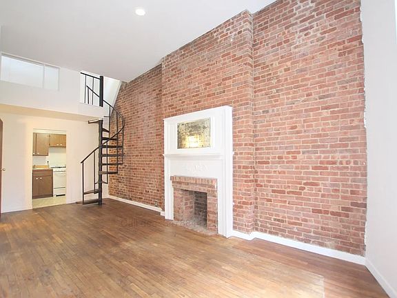 Decorative fireplaceExposed brick wallsOutdoor spaceTall ceilings