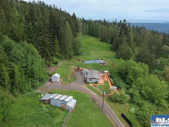 Rare Palo Alto area home! Own your own private paradise in Sequim. 27.45 acres with timber. 961 sq. ft. 2 bd. 1 ba. manufactured home. Great horse property, two separate pastures,out buildings for storage. Enjoy the privacy and relax looking out over your own personal POND, featuring hungry fish, covered gazebo with small refrigerator, and outdoor surround sound. Nearby recreational trails for hiking, horseback riding or recreational vehicles. This property borders state land.