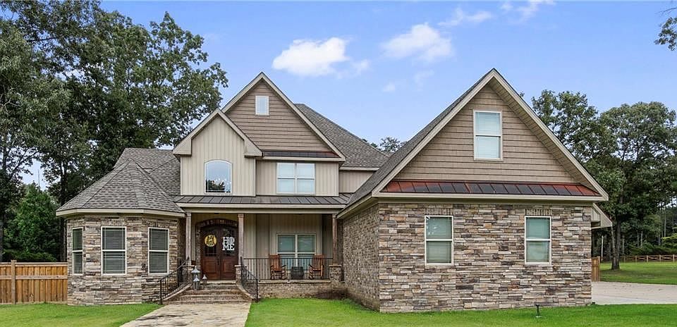 VRM: Seller will entertain offers between 465,000-490,000 upper and lower ranges.You won't want to miss this gorgeous custom built home conveniently located in Semmes, AL on approximately 2.9 acres. Plenty of room with over 3600 square feet, 4 bedrooms, 3 baths, a study, bonus room and a three-car garage!This home has many unique features including custom, antique, one of a kind, hardwood floors that were repurposed from a barn over 100 years old! The living room features a soaring ceiling with a custom stone wood burning fireplace and Bluetooth surround sound.This gourmet kitchen features customs cabinets, granite countertops, backsplash, stainless steel appliances (refrigerator will convey), copper farmhouse sink, a copper prep sink and a walk-in pantry. The large master suite features Bluetooth surround sound, a door that leads to the gorgeous stone laid patio area, a huge walk in closet, garden tub, double granite vanities, custom cabinets and a separate shower. The impressive entry leads to a formal dining area and a beautiful stairway that takes you to 2 large bedrooms with walk in closets, a custom designed bathroom, a study and a huge bonus room. Step out to a private back-yard oasis! Beautifully designed custom stone laid patio with a wood burning fireplace. The patio ceiling is rare, with wood repurposed from an antique estate fence. This is a perfect area whether entertaining or watching the kids play in the sparkling pool or privacy fenced backyard. There is also a 30X40 workshop with LED lighting.This home also has two Rinnai tankless water heaters, two a/c units with dehumidifier and energy efficient spray foam insulation. It also has an outdoor camera security system.All measurements are approximate and should be verified by buyers and buyers agent.