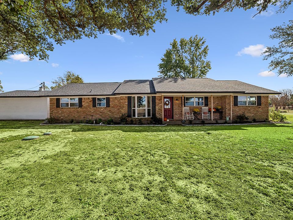 BEAUTIFUL home nestled in the country with 2 acres of land! Mature trees accent the front of the home with other trees among the 2 acres. 20' x 20' covered patio is next to the cozy fire pit! Great area for relaxing and entertaining! Come enjoy the picturesque views of the entire property! Pipe fencing ready for livestock and horses......6 stall horse barn or can be a huge shop! Charming and welcoming 4 bedroom home with primary bedroom split away from the other bedrooms. One other secondary bedroom has a private bath...can be used and a second primary bedroom. Sunny breakfast nook off the kitchen. Formal dining could also be used for many other purposes including an office. Primary bedroom has small room for exercise equipment, craft room and or lots of extra storage! Updates within the home: all windows, water heater, paint, shutters, carpet, wood look ceramic, Air Conditioning Unit, and including a recent new roof ! Older septic replaced with Aerobic System.