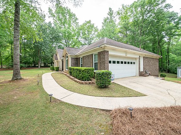 Welcome to one of the most sought-after neighborhoods in Midland! This stunning home sits on a beautifully wooded, oversized lot offering exceptional privacy, a serene creek, and a newer expansive deck—perfect for enjoying deer and other local wildlife. Inside, you'll find a spacious great room with vaulted ceilings, a cozy gas log fireplace, and custom built-ins. The updated kitchen boasts quartz countertops, stainless steel appliances, and an electric cooktop with vent hood, flowing seamlessly into a sunlit sunroom and a vaulted-ceiling dining room. The luxurious primary suite is a true retreat, featuring double tray ceilings, a jetted tub, tiled shower, double quartz vanities, and three walk-in closets. Ideal for multi-generational living, the home includes a separate in-law suite with its own full bath and built-in desk. Two additional bedrooms and a guest bath offer ample space for family or guests. Additional highlights include two large outbuildings with shelving and work tables, a 2-car side-entry garage, and energy-efficient windows and appliances throughout. All this, just minutes from top-rated schools, shopping, dining, and only 20 minutes from Fort Benning!