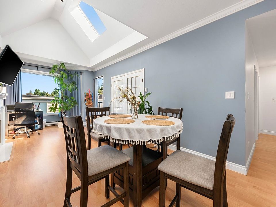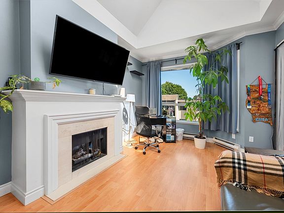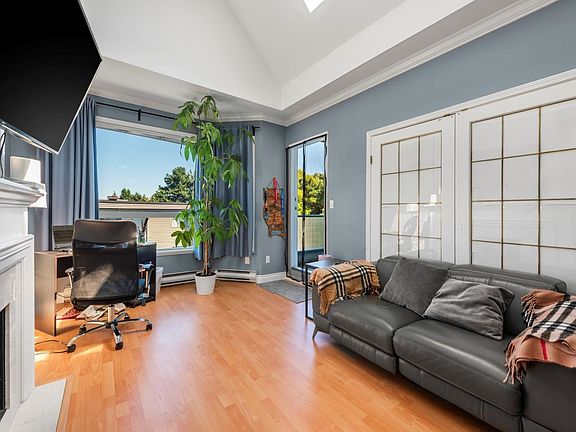 TOP FLOOR | VAULTED CEILINGS | QUIET COURTYARD OUTLOOK – Discover this bright and airy 2 bed, 2 bath home at Marquise Estates, offering 971 SF of well-designed living space. The vaulted ceilings in the living room create an open, spacious feel, complemented by a cozy gas fireplace and abundant natural light. Enjoy peaceful views from your quiet, interior-facing balcony, ideal for relaxing or entertaining. Includes in-suite laundry, 1 parking stall, and a storage locker. Centrally located in Richmond’s sought-after City Centre, just a short walk to Lansdowne Centre, SkyTrain, Kwantlen Polytechnic University, restaurants, and more. A rare top-floor find in a prime, walkable neighbourhood!
