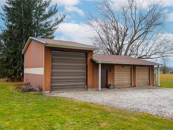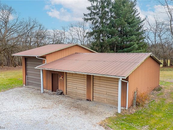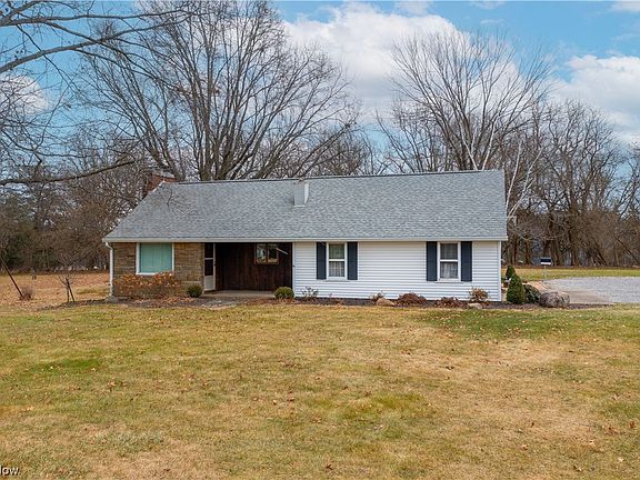 Well-maintained charming ranch on a desirable corner lot with 6.10 acres. This lovely home has three bedrooms, two full baths, and an oversized outbuilding! The inviting covered front porch welcomes you to the cozy great room with a stone fireplace and an abundance of natural light. The kitchen offers laminate flooring, a breakfast bar, under-cabinet lighting, and access to the garage. The conveniently located workshop inside the attached garage has built-in shelving and a workbench. Open to the kitchen is the bright dining room. Adjacent to the dining room is the beautiful four seasons room featuring wood paneling, skylights, and a relaxing view of the backyard perfect for gatherings with family and friends. Finishing up the main floor are 3 bedrooms with built-in closet organization and a full bath with a laundry chute, a double vanity, and a linen closet. The egress basement is partially finished with a rec room with a wood-burning fireplace, access to the side yard, a cellar, a bathroom with a walk-in shower, a laundry area, and plenty of storage. The oversized outbuilding completes the package featuring an RV garage, a workbench, and even more storage. Recent updates include new shingles, a new furnace, a submersible pump and pressure tank, and a new septic. Make an appointment for your private showing today!