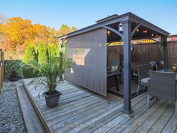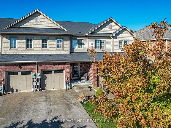 Imagine your daily routine beginning with the backyard views of PICTURESQUE GREEN SPACE, ALONG WARREN WOODS TRAIL, with no rear neighbours to interrupt the view. This 3-bedroom, 2.5-bathroom freehold townhome has a thoughtfully designed open main floor plan. Sleek kitchen with UPGRADES & IMPROVEMENTS incl tile backsplash, chimney-style hood fan, & soft-close drawers. Attention to detail continues into dining area with MATCHING CUSTOM CABINETRY featuring bench, pantry cabinets, & wine rack! Natural light floods the space thru the sliding door, while elegant light fixtures add a touch of sophistication. Retreat to the primary bedrm, a true oasis of calm. ENSUITE is bathed in natural light thanks to a window & features a tile shower with a glass door & potlight. The CUSTOMIZED WALK-IN CLOSET has a built-in hamper! One of the bedrms has been cleverly transformed into a den with custom built-ins, offering a versatile space that can easily serve as a 3rd bedrm. Convenient 2nd floor laundry located across from a spacious closet. 2nd upstairs bathrm is a full 4-piece. FINISHING TOUCHES elevate this home, including a stylish french door, a retractable screen on the front door, California shutters on all main floor & upstairs windows, & zebra blinds on exterior glass doors. Step outside to this serene backyard "retreat" with a spacious DECK (+/- 20ft x 15ft 10in). Unwind or entertain family & friends in this charming space complete with GAZEBO, decorative river rock, some bamboo fencing, & VIEWS THAT ARE A BACKDROP OF FORESTRY & RAVINE. Inviting aggregate front walkway & driveway. Beautiful neighbourhood, nearby shopping, schools, parks including Heartland Forest, walking trails, & future location of new Niagara Falls Hospital. Enjoy easy access to the QEW & the many attractions in the Niagara region, including wineries, golf courses, shopping, & more! This is an exceptional townhome with STUNNING NATURAL VIEWS!