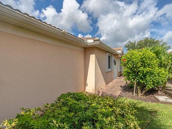 JUST REDUCED! HOME IS NOW READY FOR SALE. NEWLY PAINTED, LAMINATE FLOORING, DETAILED PAITIO AND NEW SCREENS, ETC. ADJUSTED PRICE TO MAKE IT ONE OF THE BEST DEALS IN VERONAWALK AND WHAT A WESTERLY VIEW !!!!!!!! IN South East Naples. Located in the gated community of VeronaWalk, this three bedrooms/two bath Carrington attached villa is just that. Seated in the cul de sac at the end of a small court, this home is both private and quiet. This open concept unit has tall ceilings FOR A SPACIOUS ATMOSPHERE. The centrally located kitchen has light cabinetry and counters. A breakfast bar offers additional dining space. Your primary suite has wood plank laminate flooring and connects to a bath with dual sink vanity, walk-in shower and private water closet. A generous sized closet is accessed from the bath. The full laundry room with plentiful storage and wash sink is entered from a two car garage. Bedroom located near the front entrance can also be utilized as a den or office. Your covered lanai opens into a screen enclosure that surrounds an inviting pool. Enjoy sunsets while relaxing and watching your water and bridge view. You will be storm ready with ease as windows have accordion shutters and the covered lanai has an electric unit.
