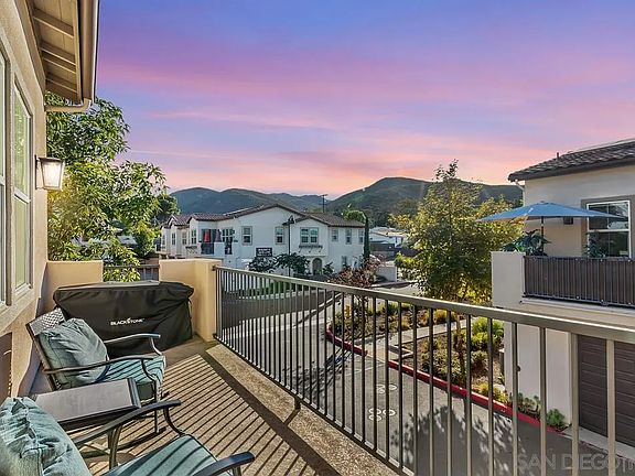 Welcome to the Ariana community. This end-unit townhome, built in 2020, has been beautifully maintained and features 3 bedrooms and 3 bathrooms, blending modern design, comfort, and eco-friendly upgrades. Enjoy an open-concept living space with brand-new LVP flooring, plush carpeted bedrooms, and plenty of natural light. The gourmet kitchen features an induction stove and under-sink alkaline water system, and connects seamlessly to the spacious dining and living areas — perfect for entertaining or relaxing at home. The primary suite offers a walk-in closet, while the first-floor bedroom, which also includes a walk-in closet, provides flexibility for guests or a home office. Step outside to your west-facing porch with beautiful mountain views, or enjoy your private front yard with turf and stamped concrete patio. This home is packed with smart and sustainable features, including 6 owned solar panels, 2 Tesla batteries, and 8 additional panels, giving you peace of mind to run your A/C freely. Additional highlights include a whole-house fan, Nest thermostat, and fiber-optic internet. The attached two-car garage offers convenient storage racks, and residents can enjoy a low monthly HOA with community amenities such as barbecue areas and corn hole. Ideally located near Mission Trails, Cowles Mountain, major shopping centers, and many restaurants — this home is a perfect fit for today’s lifestyle.