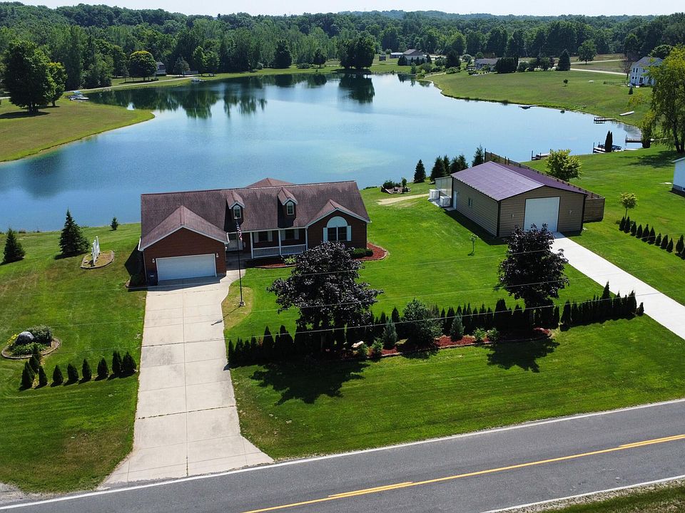 Escape to your private oasis! This lightly remodeled and updated beautiful 3-bedroom, 2-bathroom ranch home is nestled on 1.46 acres with a serene private lake, The open floor plan invites relaxation and features ample natural light throughout. Step outside to find a Newer spacious second 30' x 40' x12' heated garage with 100amp service, plus a custom 18'x30' year-round greenhouse with lighting, heaters and automated irrigation to nurture your green thumb. Unwind in the soothing spa while enjoying the breathtaking views of the lake and surrounding nature. House features whole house water filtration system, underground sprinkler system, updated landscaping, newer air conditioner, carpets, flooring, tile backsplash, electric fireplace, paint and much more, all appliances included. House has natural gas and many internet options at the road. Don't miss this incredible opportunity to own your slice of paradise