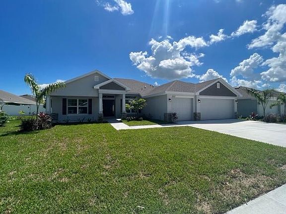 QUICK MOVE-IN! Brand New CBS Home with 3 Car Garage!! 2,265 Living sq. ft with 4 bedrooms 3 full bathrooms and 3 Car Garage, lots of room with 10' Ceilings, Foyer entrance, Dining, Living and family room. Enjoy the large covered lanai that offers plenty of space for your guests and access to a cabana bath! Split-floor plan with Master suite/ split vanity and tub and shower and private water room. Close to I-95 and Fl. Turnpike, shops and restaurants, fishing, golf, and beaches! Community pool, fitness room, playground, picnic area, volleyball, tennis and pickle ball courts. ALL CLOSING COSTS PAID with approved lender!! **Sample Photos Used** Don't wait - Come take a look today!