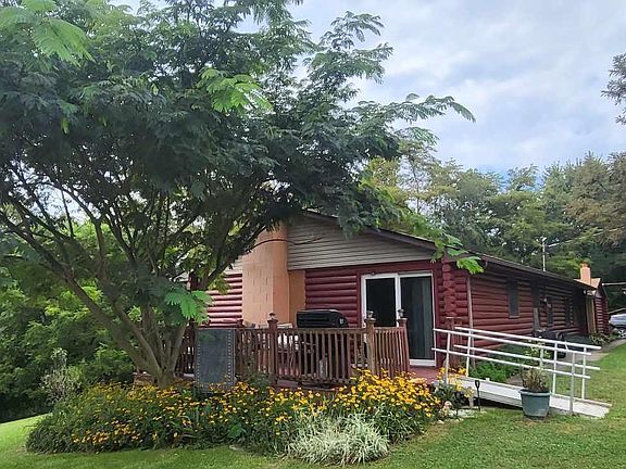 As you approach this enchanting log home, you'll be captivated by its timeless appeal and the tranquility of its surroundings. Step inside to find a warm and inviting interior, adorned with stunning woodwork and a cozy ambiance that only a log home can provide. This single level home features a spacious living area, perfect for entertaining family and friends or simply relaxing by the fireplace on chilly evenings. The well-appointed kitchen offers ample counter space and storage with dove tailed custom cabinetry, making meal preparation and storage a breeze. Between the attached garage and main home, you'll find a convenient canning room, ideal for preserving your garden's bounty or indulging in your culinary passions. This log home is thoughtfully designed to accommodate all, with handicap accessible ramps providing easy access. The attached garage ensures convenience and protection for your vehicles, while also offering additional storage space. Three generously sized bedrooms provide ample space for rest and relaxation. The master bedroom boasts a tranquil atmosphere, while the additional bedrooms offer versatility to suit your needs, whether it be a home office, guest room, or hobby space.