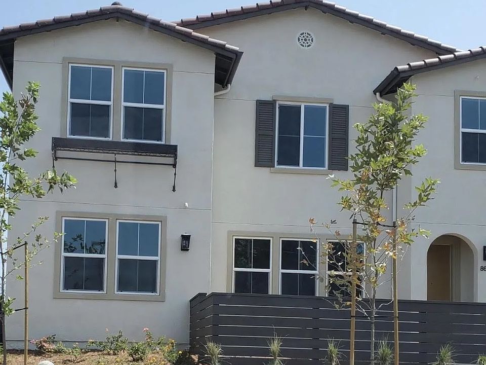 Built in 2020, this modern 4-bedroom home offers a bright, open floor plan with 9’ ceilings and vinyl plank flooring throughout. The spacious kitchen features a large island, granite countertops, stainless steel appliances, and an instant hot-and-cold water tap.Upstairs, the primary suite includes dual sinks, a walk-in closet, and beautiful sunset views. The convenient upstairs laundry room includes built-in storage and a folding counter. A whole-house fan helps keep the home cool while reducing AC use. Energy efficiency shines with included solar, dual-pane vinyl windows, and a Tesla charging station in the attached 2-car garage. Outside, the fenced-in patio is perfect for BBQs, lined with a fully producing passionfruit vine and offering stunning evening sunsets. Located on the outskirts of the community, this home provides extra privacy and ample guest parking right nearby. All of this in a peaceful neighborhood with a low HOA, just 5 minutes to the 52 and 125 freeways and 10 minutes to Costco, Target, Sprouts, Trader Joe’s, and more—within a top-rated school district. Move-in ready, stylish, private, and energy efficient—this home truly has it all.