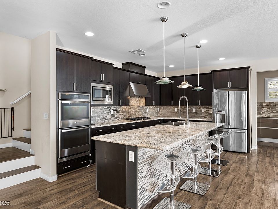 Luxury Living in Yellowstone a Gated development in Mountains Edge! This highly upgraded, 2-story home features 5 bedrooms, 4 bath, a large upstairs loft, and a 3-car garage. The chef’s kitchen is a masterpiece, boasting custom cabinets, upgraded countertops, stainless steel appliances with a double oven, custom hood, and a large island with seating. Convenience is key with a huge walk-in pantry, a butler's pantry with a beverage fridge, and a large laundry room with custom cabinetry. The home shines with custom flooring, plantation shutters & upgraded fixtures throughout. The primary suite is a true retreat with dual custom finished walk-in closets and a highly-upgraded bathroom. Enjoy stunning mountain and valley views from the rooftop deck. The backyard offers custom landscaping, deck, paver patio, imitation grass, and a dedicated BBQ/Grill station. Residents enjoy parks, clubhouse, sports courts, exercise room, and a pool. Shopping, dining, and schools are minutes away. A must-see!