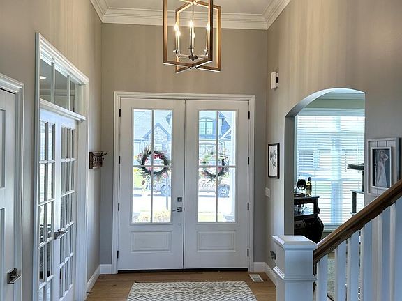 - Beamed Ceilings, Walk-In Closet(s), Stone Counters, Crown Molding, Eat-in Kitchen, Entrance Foyer, Kitchen Island, Open Floorplan, Pantry, Double Vanity, Tub/Shower Combination, Formal Dining Room, Great Room, Custom Cabinetry