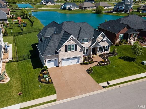 Situated on a HALF ACRE on one of prestigious Bellevue Subdivision's best lake lots, this STUNNING home features 5-6 Bedrooms and 4000 impeccable square feet of builder upgrades and amenities. This fantastic floorplan does not disappoint! The double door Formal Entry welcomes you with soaring 12 foot ceilings and gorgeous LVP floors that adorn most of the first floor. Just off of the Entry is the Office with multiple windows and a large walk-in closet. The Formal Dining Rm/Living Room is also just off the Entry, situated across from the Office. The Gourmet Eat-in Kitchen is completely open to the Great Rm and features an abundance of elegant crowned custom cabinets with soft-close doors and drawers, stainless appliance package including 5 burner gas range, a bounty of granite counter tops, VERY SPACIOUS work island (almost 9 FEET!), backsplash, and OVERSIZED walk-in pantry. The Dining area in the Kitchen is spacious enough to hold a large table, and yet another reason this home is PERFECT FOR ENTERTAINING! The Great Rm features a wood-beamed ceiling, gas fireplace, and a wall of windows that overlook the beautiful backyard. The Master Bedroom is extremely large and also features a wall of windows with great views of the lake. The luxurious Master Bathroom features His and Hers separated vanities, a large walk-in tile shower, oversized walk-in closet, and commode closet. There is another large Bedroom on the main floor with great lake views and ideally situated next to another large full Bathroom, making it the perfect Guest Bedroom. The Laundry Rm is amazing, with granite counter tops, a cubby for book bags and shoes, etc, hanging space, sink and plenty of cabinets. There are FOUR MORE LARGE CLOSETS on the main floor...no storage shortage here! Walk upstairs to the ENORMOUS BONUS RM, perfect for kids! There are THREE more big Bedrooms, one has a dedicated Bathroom and there is another large Bathroom adjacent to the other two Bedrooms. There are two LARGE WALK-IN UNFINISHED STORAGE AREAS UPSTAIRS ALSO. The Big 3-car garage has great storage above and has a sliding door to your own personal walk-down STORM SHELTER!! WOW!! The LARGE fully-fenced backyard has a great covered porch with ceiling fan (accessed from Kitchen) and an extra large poured patio, the perfect spot for grilling and/or just taking in the wonderful lake views! Additional features: beautiful crown molding throughout, irrigation and landscaping front and back,