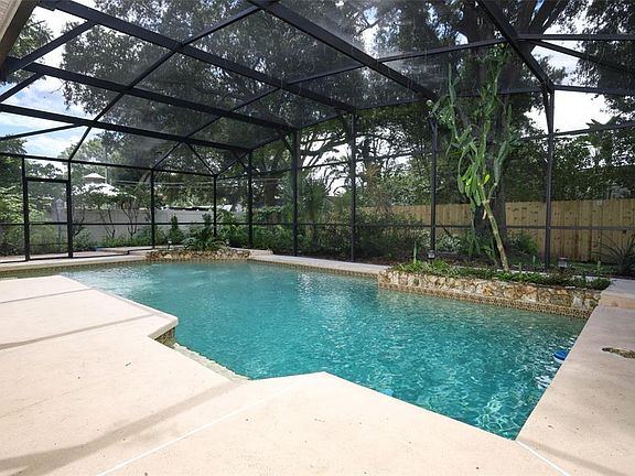 Serene poolGenerous lanaiCorian countertopsNew exterior paintReal pubImpressive formal dining roomPrivate newly fenced yard