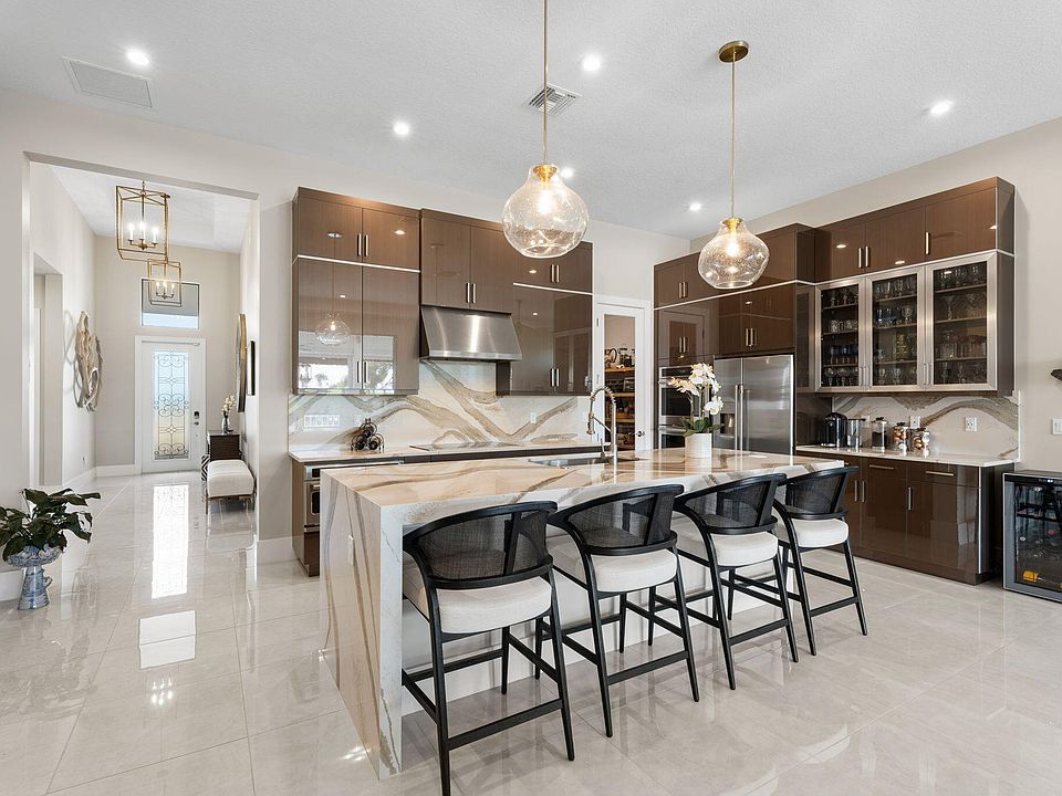Outdoor kitchenSpacious corner lakefront lotOpen-concept livingLuxurious tile floorsScreened-in oversized heated poolElectric hurricane screensImpact glass and doors