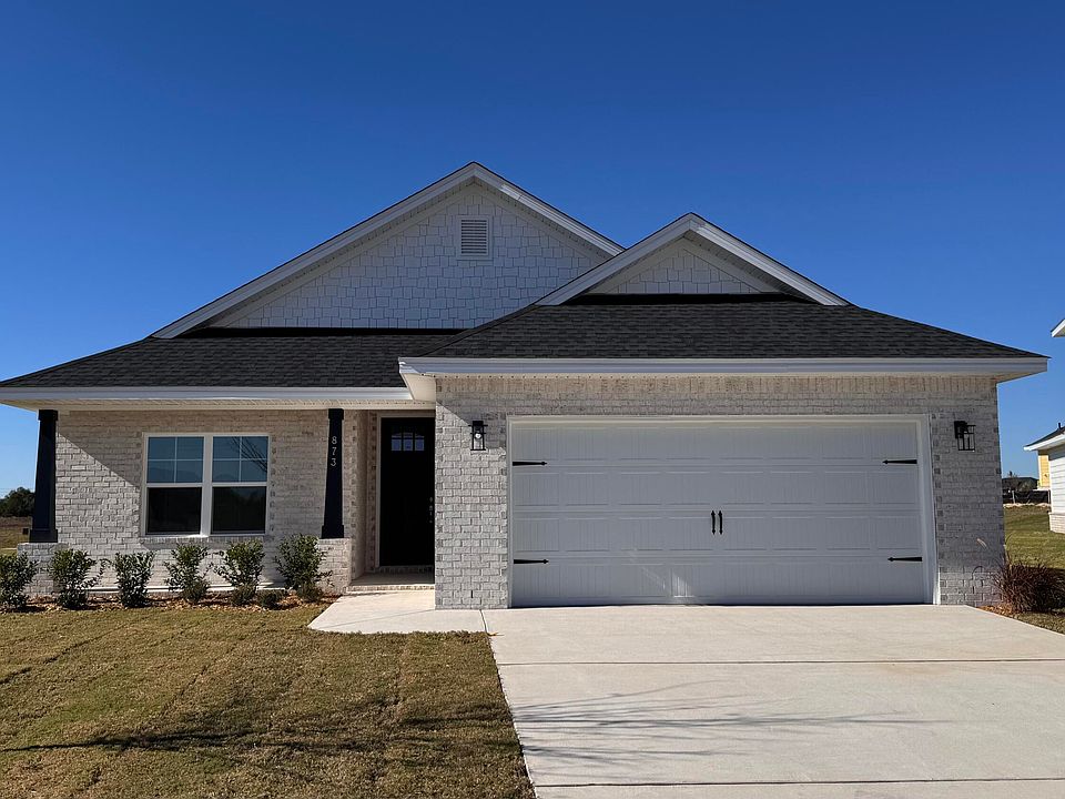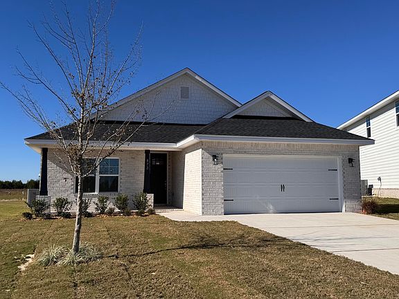 20 minutes from Blue Mountain Beach! F Full brick, open concept, 3 bedroom, 2 bath plan with LVP flooring throughout; no carpet. Home features minimum 9' ceiling height with trey in M. Bedroom and soaring ceiling in living room. 8' entry doors, large rear covered patio, Master bedroom is 14 x 22. Generous size master closet, separate garden tub and shower, quartz counter tops, undermount sinks, lever-handled doors, sprinkler system with well & pump, fully sodded yard, pull-down attic stairs, garage opener. Sit