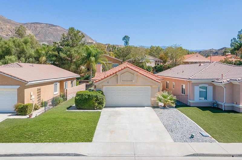 This charming two bedroom, two bath home is in a golf course community near Soboba. It has a great room with a fireplace and has been freshly painted throughout the entire home. New laminate flooring has been installed with tile at the entry. This home is turnkey and ready for you to move in. It has a covered patio for your entertainment pleasure. No HOA and low taxes!