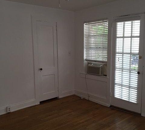 Adorable studio apartment with eat in kitchen, hardwood floors, covered balcony, off street parking, and laundry on-site. Central heat and a/c window unit. Good storage, too! Just 2 short blocks to Piedmont Park. Walkable to Trader Joes, shops, and restaurants, too! Live near the best of Midtown! Tenant responsible for utilities: Gas and Electric. Flat fee for water/sewer/trash use is $50/month in addition to the rent.