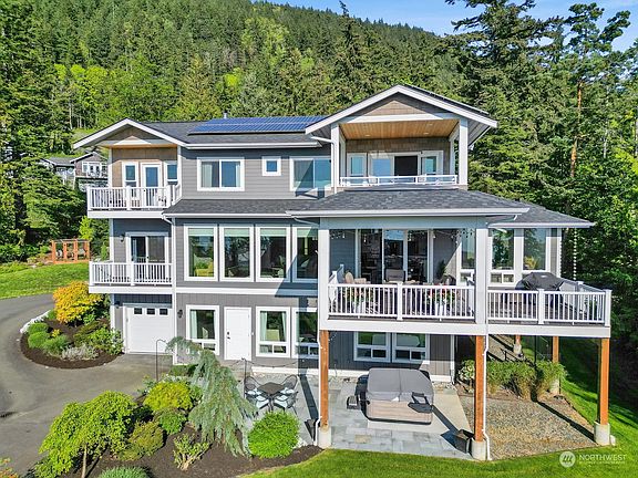 First time on the market, custom 2018 build Chuckanut view home on shy half-acre with no expense spared. Enjoy indoor/outdoor living w/610 sq ft of decks, gorgeous views of Dot Island and the San Juan Islands, & private community access to 5 beaches. Featuring an open floor plan with floor to ceiling windows, Chef’s kitchen with quartz counters & butlers pantry, 2 car garage w/additional 3rd garage space for your hobby car or shop. Kick back and relax in everyone’s favorite spot - the sun room! Upstairs has primary bedroom w/vaulted ceilings and a bathroom straight out of Homes & Garden Magazine maximizing the sunset and water views. Downstairs has 1170 sq ft which is ideal for Mother-In-Law quarters. Live your best life in the PNW!