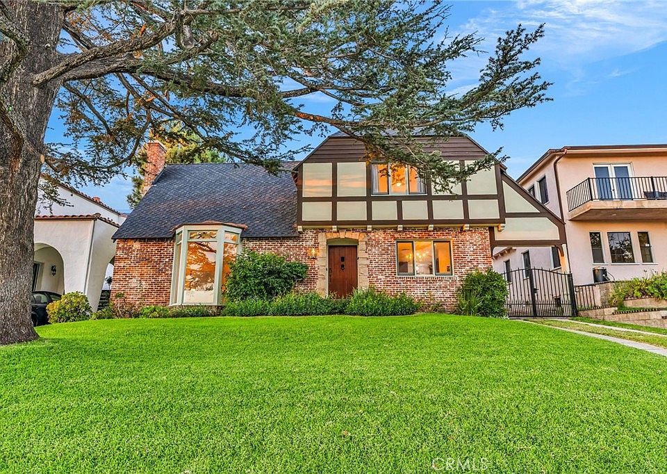 Located on picturesque Cumberland Road in the highly coveted North Cumberland Heights neighborhood, this beautifully remodeled 3-bedroom, 3-bathroom home offers a rare blend of timeless architectural charm and thoughtful modern upgrades. Built in 1935 in the English Tudor Revival style, the home showcases signature period details, including a cross-hipped gable roof, red brick accents, a Porte Cochere, and decorative wood corbels—adding to its distinguished curb appeal and historic character. Inside, the home has been tastefully updated while preserving its warmth and style. All three bedrooms are located upstairs, including a spacious primary suite featuring a walk-in closet, a remodeled en-suite bathroom with dual sinks, designer fixtures, and a large walk-in shower. The primary bedroom also enjoys serene views of mature trees and the charming neighborhood below. The chef’s kitchen has been fully remodeled with stainless steel appliances, a generous center island with seating, custom cabinetry, and high-end finishes. The living spaces feature hardwood and porcelain tile flooring, beamed ceilings, and abundant natural light throughout. Updated bathrooms, spacious secondary bedrooms, and warm, cohesive finishes make the interior as inviting as it is functional. Outside, the backyard is ideal for entertaining with a sparkling pool and spa, built-in BBQ with fridge, and a private patio area perfect for gatherings or relaxing evenings. Nestled among tree-lined streets and historic homes, and just moments from Kenneth Village, Brand Park, top-rated schools, and the best of Glendale, 869 Cumberland Rd. delivers rare architectural character, refined modern living, and an unbeatable location in Northwest Glendale.