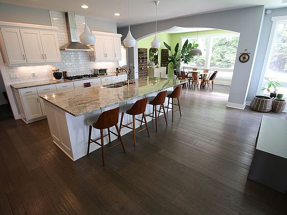 Step inside to find hardwood floors flowing throughout the entire first floor, complemented by high-end lighting and large windows that fill the entire west wall of the main living area with natural light. The open living, dining, and kitchen spaces create a seamless environment for entertaining and everyday comfort.