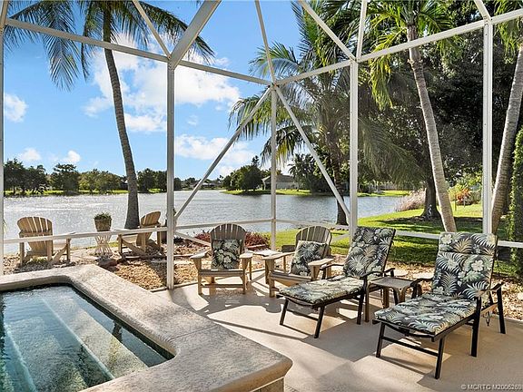 Stunning lakefront 3-bedrοοm, 2‐bath poοl homе with 2-car garage іn the hіghly sought-after Windemere Community. Nestled on a quiet cul-de-sac street, this home offers the perfect blend of privacy, comfort, and beautiful water views. Enjoy your own tropical oasis with a solar-heated swim spa pool, ideal for year-round relaxation and fitness. Situated on a private lakefront lot, it features panoramic views from the spacious, covered patio. For added peace of mind, there are accordion storm shutters on all windows, electric roll-down shutters on the front door and patio, plus an insulated impact garage door. This home is full of upgrades! Windemere offers a park, playground, half basketball court, picnic area, and fitness trail, perfect for outdoor living. Walk or bike to local favorites like LA Fitness, The Googan Coffee Shop, and more. Located in a top-rated school district, just minutes from shopping, dining, and Jensen Beach’s beautiful coastline. Don’t miss this lakefront gem!