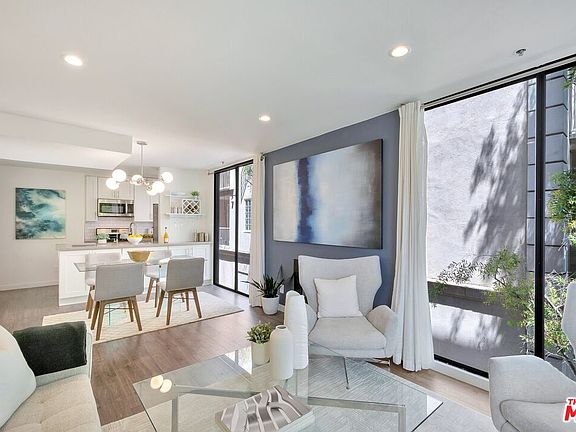 Indulge in luxurious living within this exquisite 2-bedroom, 2-bathroom remodeled condo one block away from the glamour of Beverly Hills. Adorned with floor-to-ceiling glass sliders and windows, revel in treetop vistas from the spacious living room. The great layout features recessed lighting, upgraded floors, and an airy open-concept kitchen boasting stainless steel appliances. Embrace the convenience of a stacked in-unit washer/dryer, ample closet and cabinet space, and two separate bathrooms. Additional highlights include bonus storage area, tandem parking with open drivable access on both sides, and an EV charger. Enjoy seamless modern living within this sophisticated unit in a coveted location.