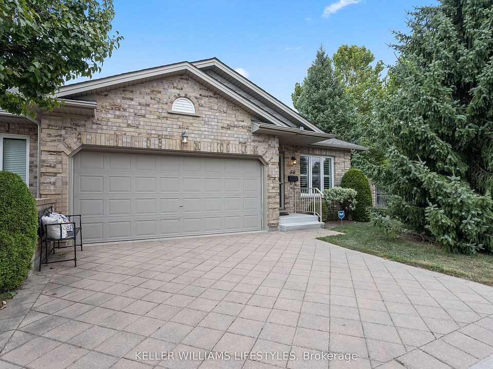 Perfect location! Beautifully maintained end-unit condo in a sought-after private adult community. This bright and spacious home offers 3 bedrooms, 3 bathrooms, vaulted ceilings, California shutters, updated lighting, and durable bamboo flooring. The kitchen features new quartz countertops, stainless steel appliances, and a ceiling fan, with a patio door leading to a private deck complete with gas hookup perfect for your BBQing pleasure. The spacious primary suite includes a 4-piece ensuite with soaker tub and separate shower as well as a walk in closet. The finished lower level boasts a large rec room with a gas fireplace, an additional bedroom with walk-in closet, and a 3 piece bath, and plenty of storage with potential for a hobby or fitness area. Additional highlights include a humidifier-equipped furnace. This adult community includes a clubhouse with fitness centre, nature trails, and walking distance to Farm Boy and Angelos. With professional yard and snow maintenance, this low-maintenance home offers both comfort and convenience in a desirable location.