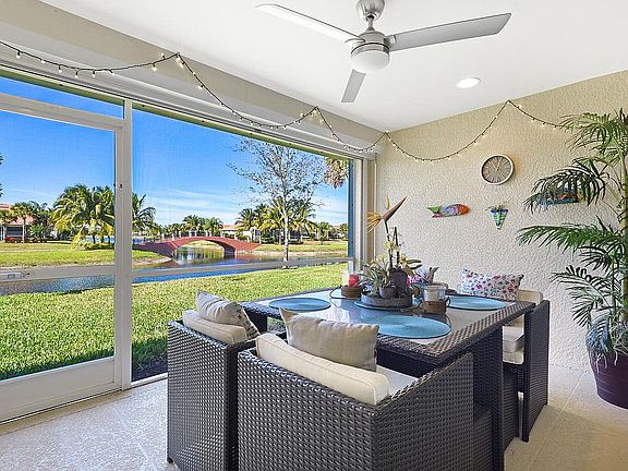 Easy to Show, Price Reduced! DON'T MISS this meticulously maintained 3 bedroom Carrington Model, features open concept living & a beautiful lake view. Newer Villa, only 7 years old, with large slider system in great room & wall-to-wall windows in master suite, along with the vaulted ceilings make this home LIGHT & BRIGHT! Kitchen has fine wood cabinetry, stainless steel appliances, glass tile backsplash, Features include split bedroom floor plan for privacy, third bedroom w/ French door entry great for office, den or guest quarters, 20x20 tile flooring, huge walk-in closets. Master bedroom overlooks peaceful water views from the outdoors, the en suite bath has a large tiled shower, dual sinks. Spacious screened lanai offers extended living space allowing to entertain outdoors with views of the water & bridge. Lanai has electric storm shutters. Enjoy the many amenities that this gated community has to offer, Low HOA Dues, Town Center with cafe, car wash, gas station, beauty salon, fitness center, 2 heated swimming pools and much more. Close to Shops, 5th Ave & Famous Naples Beaches. This home is Easy to Show, Can Close Quickly!