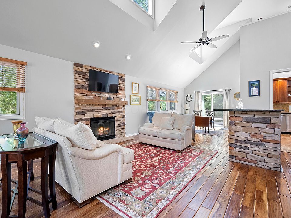 Price Improvement for this first floor primary suite in Muirfield Village! Welcome to this 3-bedroom home with cathedral ceilings, natural sunlight, a kitchen featuring shaker style cabinets, granite counters, stainless steel appliances and a large pantry. Primary suite with updated bathroom to include shower, tub, double sinks and impressive flooring. Private bedrooms and bath located on the second floor; perfect for your guests to enjoy! There is another 700+ sq ft in the finished lower level complete with a ½ bath. Come see this fantastic find in Muirfield Village which offers over 29 miles of walking paths, 2 community pools and tennis courts. Home improvements include New Gutters/downspouts, Interior Painting, New Toilets, Sliding Glass Door and Landscaping