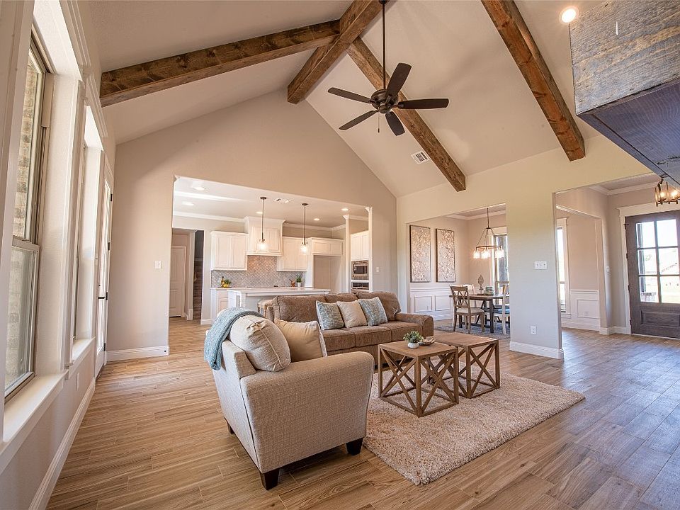 Best selling DOC Homes' floor plan on 2 acres in Brock ISD! Formal entry greets you as you walk into this open concept, split bedroom home. Secluded master suite with free standing tub, large separate shower, dual sinks, and direct access from master closet to laundry toom. Spacious jack and hill bath connect bedrooms 2 and 3 on lower level and 4th bedroom upstairs features a full private bath! No detail overlooked in this country stunner!. NO HOA AND CHICKENS ARE ALLOWED! Completion mid October.