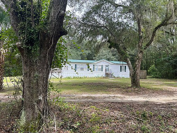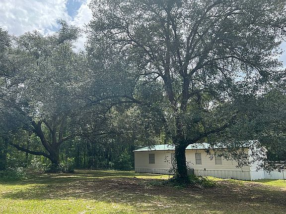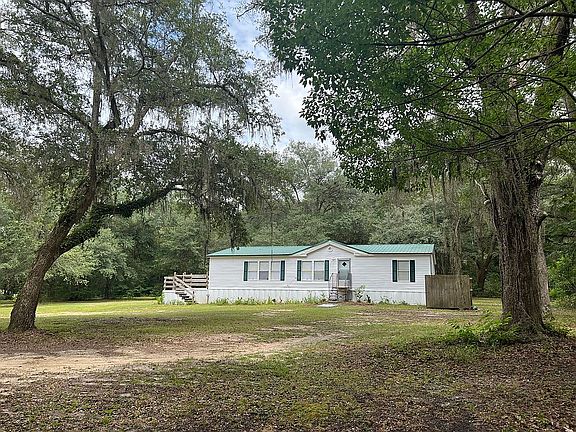 This 2000, 1344 sq. ft., (28’ x 52’) 2 bedroom, 2 bath, double-wide mobile home is a second set (2010) and has been completely remodeled with new luxury vinyl plank flooring throughout, fresh paint, new kitchen cabinets and kitchen island with a walk-in pantry. The over-sized (14’ x 30’) living room includes a former 3rd bedroom that could be returned to that with minor interior construction of one wall. It features an open floor plan as the kitchen opens to the dining and large living room areas. A garden tub with a separate shower and a 2-sink basin is in master suite bathroom as well as a walk-in closet. The utility room with a washer/dryer connects to both the kitchen and through an exterior door to a 8’ x 12’ deck that overlooks the front and side yards and the circular driveway entrance. Central electric heat and air conditioning. Metal roof. The home is set on five acres with one acre cleared and the rest a part of a 200+ acre upland hardwood forest. The property is on a dead-end, paved road just 3 miles from Live Oak. No through traffic other than for a few residences. No HOA or deed restrictions. High and Dry. Abundant wildlife. Walmart, Publix, Lowes, Tractor Supply, Ag-Pro, I-10, and downtown Live Oak are within a 6 minute drive; schools and I-75 are about 10 minutes; Spirit of the Suwannee Music Park less than 15 minutes. 1.5 miles away is Suwannee Lake Fish Management Area that is managed by the state and stocked with largemouth bass, filled with cypress trees, and accessed by fishing piers and a boat ramp for small boats.