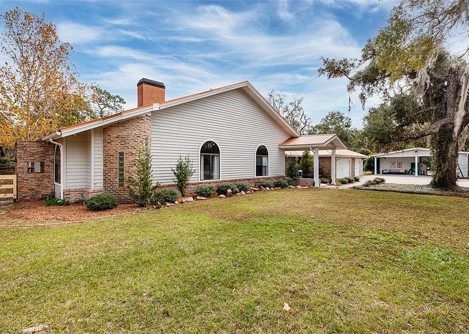 Welcome to this extraordinary lakefront estate located in the highly desirable Sweetwater Pointe subdivision in Inverness, offering privacy, space, and breathtaking views on just under 4 acres in a non-flood zone. This impressive 3 bedroom, 2 bath, 3-car garage home spans over 3,000 square feet and is thoughtfully designed for both everyday living and exceptional entertaining. The luxurious primary suite is a true retreat, featuring two walk-in closets, a private sitting area, and an attached office, along with a spa-inspired bath boasting dual vanities and a large walk-in shower with double shower heads. Additional highlights include a beautifully appointed second bathroom, 2 extra bedrooms, living and dining rooms and a spacious laundry room with ample storage. Outdoor living is unmatched with a screened-in porch, outdoor grilling area, inviting front porch, sparkling pool, and stunning lakefront views that create a serene and picturesque setting. The expansive grounds provide endless opportunities for recreation, pets, and exploration, while the barn with office space adds exceptional versatility. A large welcoming entrance, abundant parking, and a three-car garage complete this remarkable property. Rarely does a home combine acreage, lakefront beauty, luxury features, and privacy so seamlessly—this is a truly special opportunity and a must-see to fully appreciate all it has to offer. (HOA quarterly fee in for both lots combined, 2 votes within the community as well)