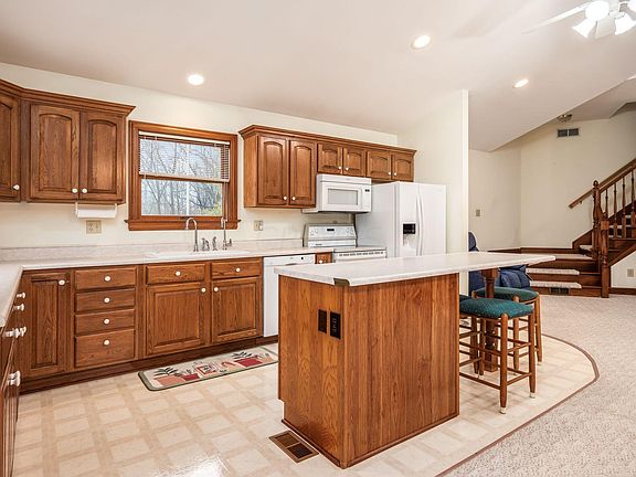 Solid Custom built home. Unique design surrounded by woods. Owner s suite is huge and has 2 full bathrooms, so many closets and storage throughout. The solid 6 panel wood doors and woodwork are gorgeous! Beautiful brick fireplace, sun room overlooking the woods, huge back deck with a gorgeous 200 sqft gazebo also overlooking the woods that surround this home! Huge kitchen with Oak cabinets, so much room for entertaining. Walk out basement with half bath, utility room and rec room (not included in the square footage) Electric heat with propane backup and 2 hot water heaters. Huge custom built barn 29x60 with full loft with 1,740 sqft. You have to see it to appreciate it!