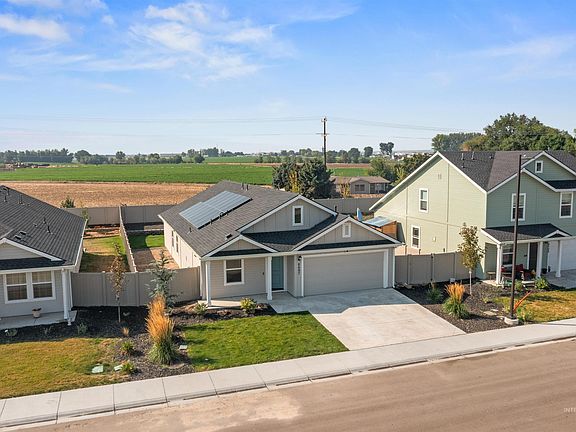 Enjoy a $15 Power Bill! Brand new solar panels WILL be paid off for you to move in and reap the savings benefits. This community features walking paths, green spaces, tot lot, park, club house and POOL. Beautiful home offering split layout design with 4bedrooms, 2 bath, one level living with an open great room, and attached 2 car garage. Fully fenced and landscaped rear yard. Kitchen showcases white shaker-style cabinetry with upgraded quartz countertops and backsplashes. Stainless steel appliances including gas oven/range, dishwasher, and microwave. Upgraded water-resistant Luxury Vinyl plank flooring. Primary suite has a generous walk-in closet with custom well functionable shelving system, dual sinks at bathroom vanity. No front neighbors yet a nice green commons area. Minutes from freeway access! Costco, shopping, dining approx 6-min drive. Come check out this move-in ready home today.