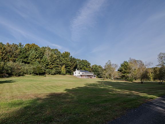 Nestled on a private road in Eastford lies this absolute gem! There has not been such a magnificent property available in this recent market! Over 10 glorious, private acres of lush grass and mature trees. 5 car garage with car lift, heat and all the hobbyist dreams of for workshop space and amenities. Carport opens to a foyer and invites you to the inlaw. A show stopper in itself completely remodeled with a cooks kitchen dream, unique reclaimed flooring, a bright and cheery living room with separate entry to patio, bedroom and full bath with it's own laundry. Basement space outfitted for exercising, storage and the neatest of utilities. The main living space greets you with full length of the home windows, LVP flooring that leads you to living room. Cathedral ceilings adorned with skylights, stone fireplace, and intricate features such as cable lighting blend right into kitchen. Here you'll find custom features like an arched window, copper sink and plenty of counter space with island. Dining area has charming built ins all leading to a mahogany railed deck outside. Full bath featuring beautiful tiled and soaking tub. Primary suite with dressing room and tiled bath with glass doored shower. Second bedroom has a Murphy bed giving the upmost floor space for a dual purpose. Outside is a true oasis with concrete patio, koi pond & fountain, inground pool, and seating area. Solar is owned and generator ready for hookup promoting the upmost efficiency. A one of a kind find! Buyer/Buyers agent to verify all info. Pre approved buyers for showings only. Agent must be present!
