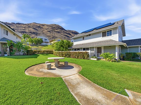 Welcome to this well-maintained 3-bedroom, 2-bath single-level home in the desirable Sea Country community of Wai'anae. Available December 6, 2025, this home offers modern comfort, community amenities, and a peaceful island lifestyle. The interior features tile and hardwood flooring, air conditioning, and an updated kitchen equipped with a brand-new refrigerator and brand-new dishwasher, both under warranty, along with a microwave, oven, range, and garbage disposal. A washer, dryer, ceiling fans, garage shelving, and a mounted 50-inch TV in the garage are also included for added convenience. The home benefits from owned solar, keeping electric bills low. Outside, you'll enjoy a pergola, backyard storage, and a programmable sprinkler system. Sea Country residents have access to parks, a pool, dog park, and community center.