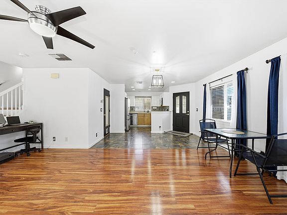 Backyard storageUpdated kitchenTile and hardwood flooringAir conditioningCeiling fansProgrammable sprinkler system