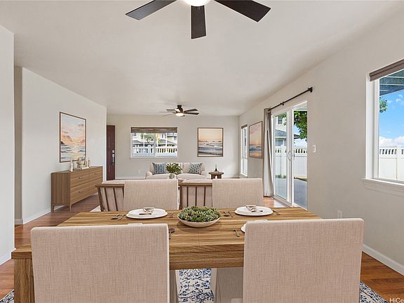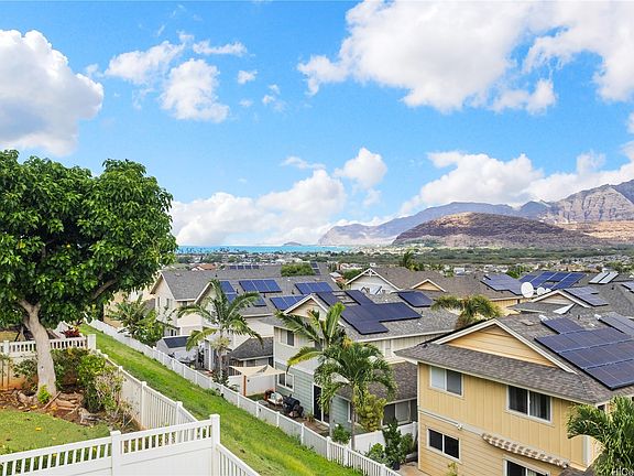 OCEAN VIEWS! Rare, large 5-bedroom, 3 bath 1,871 sq. ft. ocean view home located on a rim lot in Upper Pakeke St with no homes in front and panoramic mountain, ocean and sunset views behind. Built with upgraded DR Horton options including extra-large primary bedroom with walk-in closet, 144 sq ft deck with spectacular mountain, ocean and sunset views, and a covered downstairs patio. New roof installed in 2023, new refrigerator, remodeled custom tile shower, new baseboards, new garage door and motor, freshly painted interior, and exterior was painted in 2023. Central AC and fans throughout the home keep you cool, plus extra savings come from Solar Heater and (leased) Tesla PV System with a coveted HECO NEM (Net Metering) agreement. Serene cul-de-sac location. Sea Country is a lovely community with pool and recreation area, shops, park, and more. Maintenance fee includes front yard landscaping, sewer, water and trash. Near beaches and close to Kapolei, Oahu's "second city." Seller to credit Buyer $1,500 for deck resurfacing.