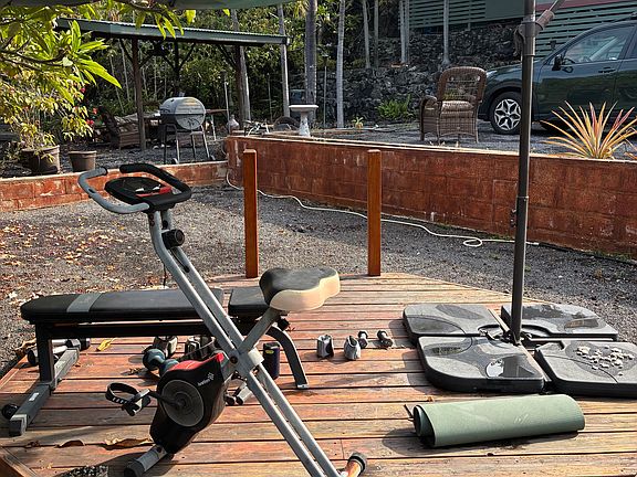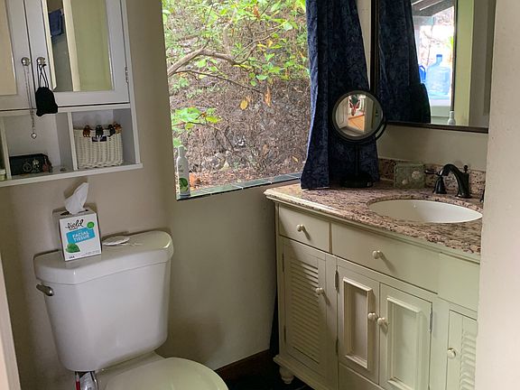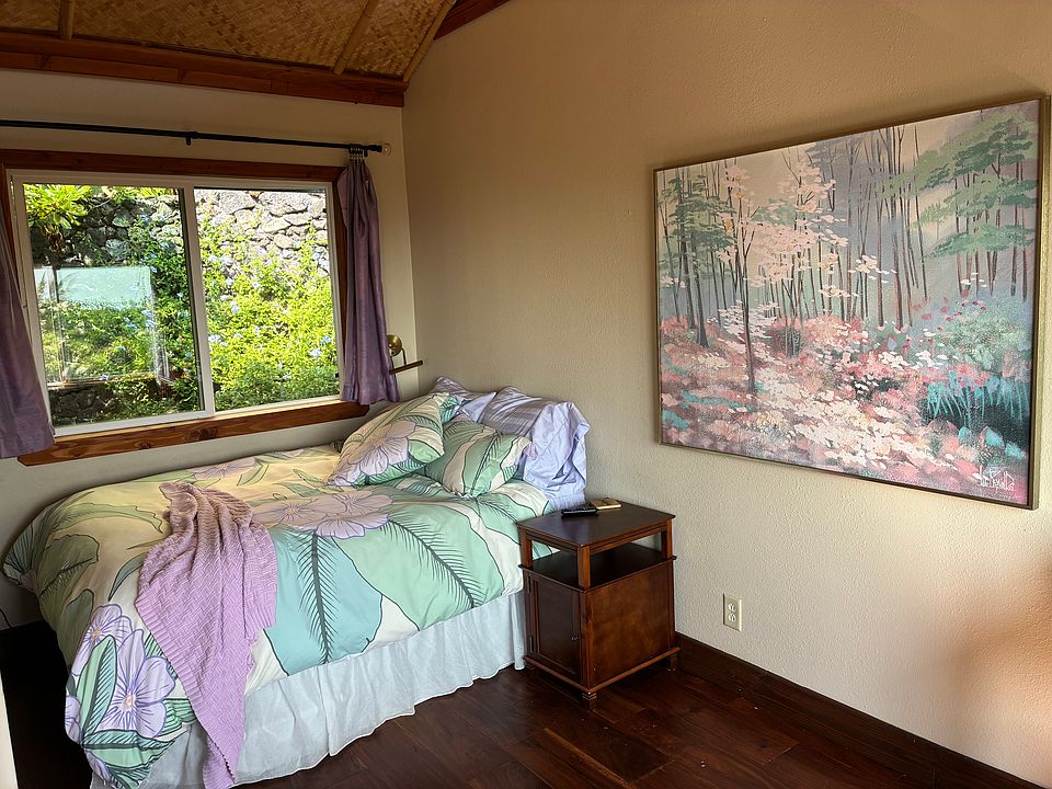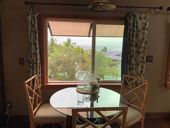 Imagine driving down a little windy road to a secluded rural area that feels like the old Hawaiian days.The road is lined with plumeria and coconut palm trees and at the almost end of the road you've reached this great hideaway cottage! The home is a two minute walk out the back door to a very private pebble beach, which I believe is the most beautiful secluded amazing beach on the island. At night God paints the most amazing sunsets with the sounds of the pebbles of waves that will lull you to sleep. It is the divers favorite paradise, with some of the best snorkeling and kayaking on the island. It is also a conservation bay, which protects our fish. The home includes free solar, so no Helco bill. Fully furnished Two kayaks Gazebo She shed zen guest room Attic guest room for very small person or just extra storage Gazebo Flower beds to plant food On the drone shot, it's the property behind the purple roof. Cat ok. No dogs. Renter pays for propane, water and WiFi.