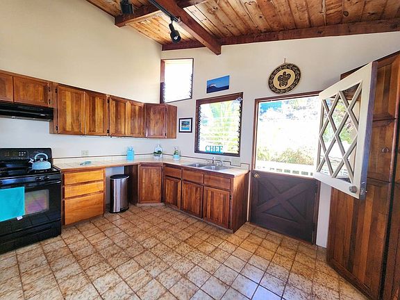 The lower level offers an open studio complete w/kitchenette, a full bathroom, walk in shower with tiled, tropical scene & dual shower heads. Enjoy the views from the lower lanai, kitchen & living area.