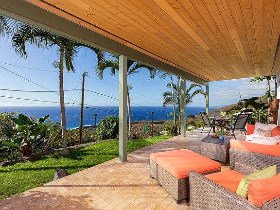 This custom 3-bedroom, 2.5-bath retreat boasts stunning coastline, sunset, and ocean views. Enjoy seamless indoor/outdoor living with 3 spacious lanais, a tiki BBQ patio - ideal for entertaining and enjoying refreshing ocean breezes. Set in a tranquil, rural oasis just 45 minutes south of town, with direct ocean access at bottom of road. Love to play Pickleball? Kona Paradise features two pickleball courts overlooking the ocean and coastline- Did we say Fabulous?