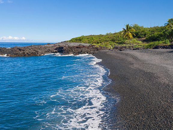 Dazzling Pacific and sunset views from this just-remodeled 2 bed, 1 bath home in relaxed Kona Paradise, South Kona, Hawaii. Light-filled and inviting 888 sq. ft. of interior square footage, 224 sq. ft west-facing lanai with forever views and 528 sq. ft covered double carport with concrete floor, laundry area + exterior storage. Handsome new outdoor shower. Many sunny days and cool, starry evenings at an elevation of 460' above the sea.Full remodel of the airy interior just completed including new:~Stainless kitchen appliances and fixtures. ~Lighting throughout.~Flooring throughout.~Paint and trim throughout.~Entry and French doors.~Bathroom with attractive corner shower and fixtures.~Super-stylish and practical "Sunbrella" front lanai shading with nautical fixtures & flair. This private home could be a perfect "condo alternative" as it has no stairs, requires little maintenance and offers breathtaking views. **HOA allows pets; up to two dogs without weight restrictions!**Kona Paradise has direct access to Pebble Beach, a unique black pebble beach that offers sunning, bathing, snorkeling, diving, kayaking, more. Hike historic "Kings Trail," extending both north and south from Pebble Beach. Picnic tables are located nearby at the Association's park and many tropical plantings abound in this well-regarded community, forty minutes south of Kona.